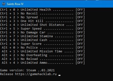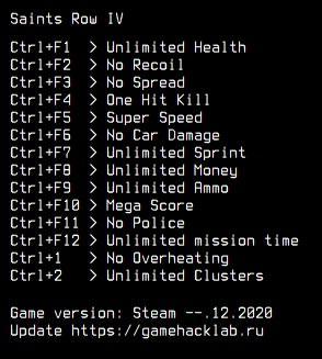 1) Бесконечное здоровье 2) Бесконечные боеприпасы (Взломанный чит код разработчиков) 3) Без перезарядки (Взломанный чит код разработчиков) 4) Без перегрева 5) Бесконечная выносливость (Взломанный чит код разработчиков) 6) Убийство с одного выстрела (Взломанный чит код разработчиков) 7) Супер взрывы (Взломанный чит код разработчиков) взрывы с многократно увеличенной силой, граната уничтожает даже танк 8 ) Неуязвимая машина (Изломанный чит код разработчиков) Машине не страшны не какие повреждения, пока в ней находится игрок 9) Машина таран (Взломанный чит код разработчиков) Машина сбивает другие автомобили в которые врезается 10) Автомобиль танк (Изломанный чит код разработчиков) Машина давит другие автомобиле если они не больше габаритами от машины игрока 11) Бесконечные деньги 12) Максимальный ранг 13) Нет преследования бандами ( нападать иногда будут но не будут преследовать так как дурная слава на банды будет на нуле) 14) Нет приследования полиции ( нападать иногда будут но не будут преследовать так как дурная слава на полицию будет на нуле) 15) Мёртвые улетают на небо (Взломанный чит код разработчиков) в прямом смысле 16) Мёртвые взрываются (Взломанный чит код разработчиков) Собственно не взрываются, скорее лопаются, оставляя много крови 17) Осечки игрока (Взломанный чит код разработчиков) Не советую включать, игрок падает натыкаясь на любое препятствии, как в миссии мошейнечество 18) Пьяные пешеходы (Взломанный чит код разработчиков) без комментариев 19) супер святые (Взломанный чит код разработчиков) собственно не понял что делает этот чит но он есть в телефоне в разделе чит коды 20) Замедление времени ( помогает в миссиях где не успеваешь) 21) Везде зомби (Взломанный чит код разработчиков) по городу ходят зомби 22) Везде талисманы (Взломанный чит код разработчиков) по городу ходят талисманы 23) Везде сутенёры и шлюхи (взломанный чит код разработчиков) по городу ходят сутенёры и шлюхи 24) Нормальные Пешеходы (возвращает нормальных пешеходов после включения одного из трёх читов с выше Функции Теле порта 25) Сохранить координаты 26) Переместится по сохранённым координатам