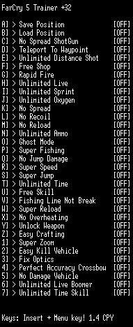 Клавиши в трейнере парные - зажимаем insert и в En алфавитном порядке функции.