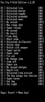 Клавиши в трейнере парные. Зажимаем клавишу insert и с зажатой клавишей, жмем клавиши указанные на панели трейнера. Каждая функция под своей буквой.