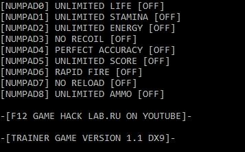 Запускаем игру, далее запускаем трейнер и жмем клавиши интересующих опций.