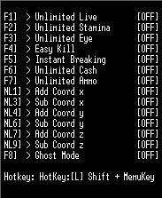 Клавиши в трейнере с F1 по F7 парные. Зажимаем Левый шифт + клавши указанные на панели трейнера.