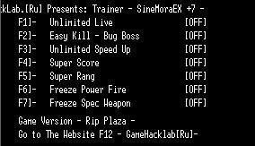 6. Sine Mora EX Просмотреть файл Использование... Запускаем игру, запускаем трейнер от имени администратора - это тот, что cpl ! Функции: Бессмертие. Убийство с одного выстрела - в битве с боссами глючит. Бесконечное замедление времени. Супер очки. Супер ранг. Заморозка мощности оружия. Заморозка спец оружия. PS: В видосе на очки не обращаем внимания - это я забыл их отключить, на множило через чур От них по моему толков не каких нет. Demo: Автор LIRW Добавлен 18.08.2017 Категория Трейнеры для PC игр