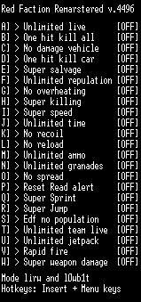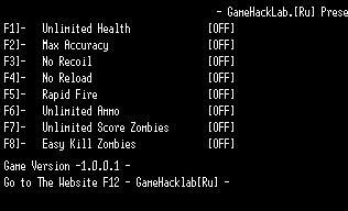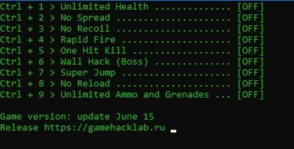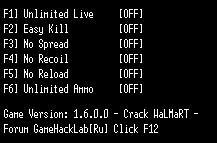 Версия игры 1.01 1.Бесконечные патроны 2.Скорострельность на всех видах оружия 3.Бесконечные гранаты 4.Без отдачи 5.Суперточность 6.Без урона (бессмертие и не трясет при попадании в вас) 7.Призрак (Каспер мод) 8.Спидхак 9.Высокий прыжок 10.Триггер бот (автоматическая стрельба, при наведении на противника) Скрыть | показать меню клавиша INSERT5 баллов -