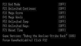 Использование: Скаченный архив распаковываем в любое удобное для вас место. Запускаем игру, запускаем трейнер. Именно игру, а потом трейнер. Функции Трейнера: 1) Бессмертие. 2) Бесконечное продолжение. 3) Много очков. 4) Много клубков. 5) Бесконечный прыжок. 6) Бесконечные ключи. 7) Сброс времени.. Если не срабатывает,жмем Esc - возвращаемся в игру и жмем клавишу. Demo:3 балла -