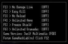 Использование: Скаченный архив распаковываем в любое удобное для вас место. Запускаем игру, запускаем трейнер. Отключаем защиту игры на F1 и далее включаем функции на своё усмотрение. Функции Трейнера: 1) Отключить защиту игры. 2) Бесконечная жизнь. 3) Бесконечные патроны. 4) Бесконечные гранаты. 5) Максимальная точность всего оружия. 6) Без отдачи оружия. 7) Без отдачи и колебания оптики на снайперском оружии. 8) Скорострельность пистолетов, а то есть нет задержки после выстрела. 9) Бесконечные очки на открытие умений, вооружения и так далее. PS: Ныне на СЕ... Игра уже не такая актуальная, что бы сидеть расписывать да ещо и на таком то движке, работает и ладно. Да и вот ещо что, защиту отключаем первым делом, а иначе игра сразу вылетит при активации какой либо функции. Demo:3 балла -