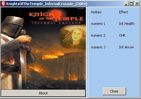 Knights of the Temple: Infernal Crusade (2004) Просмотр файла Трейнер +3 Описание: Numeric 1 = Inf.Health (бессмертие, беск. стамина и энергия) Numeric 2 = OHK (убийство с 1 -го "хука") Numeric 3 = InfArrow (Беск. стрелы) Добавил SerVick Добавлено 29.09.2020 Категория Трейнеры для PC игр