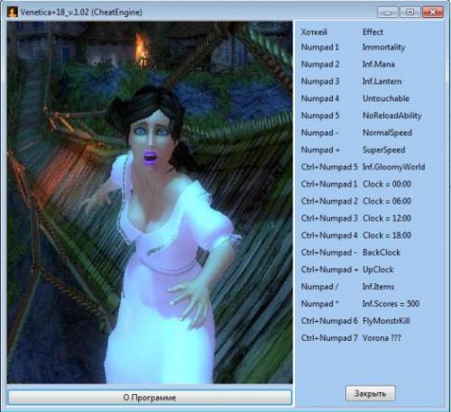 Venetica_v1.02 Для работы необходим устанвленный Cheat Engine скачать можно с оф. сайта: Cheat Engine Трейнер сделан на Cheat Engine 6.8.1 Проверен на Windows 7x64 1) Immortality -Бессмертие 2) Inf.Mana -Беск. мана 3) Inf.Lantern - Беск.фонарь 4) Untouchable - неприкасаемый (т.е. когда враги пытаются напасть на ГГ погибают, ГГ может тупо стоять, или идти как угодно) 5) NoReloadAbility - Без перезарядки умений. 6) NormalSpeed - Нормальная скорость (чуть -чуть добавлена, а то дефолтная уж как у черепахи) 7) SuperSpeed - Супер скорость(думаю понятно) 8)Inf.GloomyWorld - Беск.тень, или по другому пребывание в сумеречном мире, (пока включена функция, а то мож кто не так поймёт) 9) Clock = 00:00 - Установить время на 00:00 10) Clock = 06:00 - Установить время на 06:00 11) Clock = 12:00 - Установить время на 12:00 12) Clock = 18:00 - Установить время на 18:00 13) BackClock - Перемотать время назад 14) UpClock - Перемотать время вперёд 15) Reputation + 500 - Репутация + 500 (включать при получении репутации, после начала диалога.Или рискуете получить глюк. Не знаю из -за чего...) 16) Inf.SkillPoints => 500 Беск. очки навыков не менее 500 17) FlyEnemyKill - погибает летающая бестия. (сделал из -зи того, что в одной миссии надо забрать предмет у этой летучей мыши. А она взлетает и не нападает(сработал бы чит неприкасаемый) и лука нет в общем не понял как забрать предмет, может какое заклинание надо выучить?!.. В общем так падает и забираем предмет. может где ещё пригодится. 18) Vorona ??? - В общем бесконечно глядим глазами ближнего ворона.(в принципе не особо нужный чит, но оставил может кому и пригодится) А может кому таблица нужна?!.. Звиняйте, написал не правильно в описании в функции 7 (NormalSpeed - исправил на SuperSpeed) Хотя в скриншоте и в трейнере без ошибки. Т.е. ошибка только в описании, Venetica.CT -