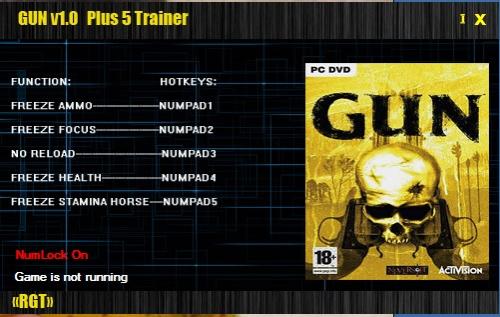 Gun Просмотреть файл Freeze ammo-------------------NumPad1 Freeze Focus-------------------NumPad2 No Reload-----------------------NumPad3 Freeze Health------------------NumPad4 Freeze Stamina Horse-------NumPad5 Автор ZOCKIR Добавлен 14.05.2016 Категория Трейнеры для PC игр